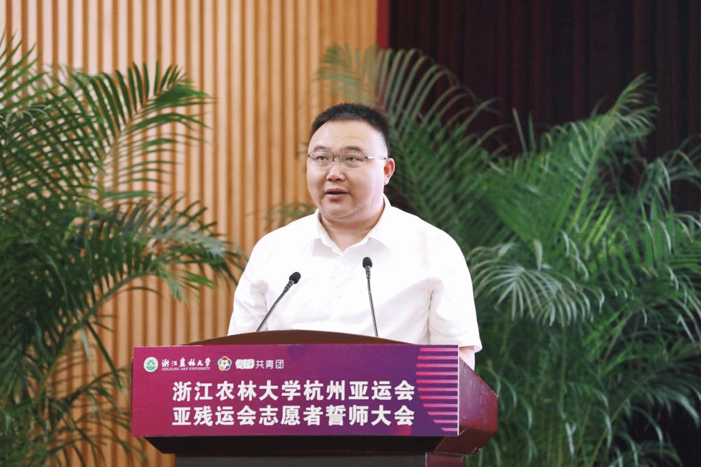 朱斌對我校亞運會志愿者們提出了三點希望和要求:一是心懷“國之大者”,強化“精益求精、萬無一失,只留經典、不留遺憾”的使命擔當。要秉承“每一個志愿者都是一個窗口”的大局意識,以浙農林大鐵軍堅韌不拔、不斷超越的精神,為呈現一場“中國特色、亞洲風采、精彩紛呈”的盛會貢獻青春智慧與力量。二是堅持決戰決勝,交出“臨安放心”“國家滿意”“國際稱贊”的志愿服務高分答卷。要秉承“每一個志愿者都是一個主人翁”的服務意識,履行崗位職責,發揚精益求精、追求卓越的精神,周到處理每項任務、用心打磨每個細節,確保優質高效的賽會服務,在國際舞臺上展現中國青年風采。三是做到心無旁騖,在全力以赴服務亞運賽事中實現青春價值。全校上下要全力做好志愿者學習、生活的保障服務,增強志愿者的獲得感,提升學校美譽度,努力打造“叫得響”“立得住”“傳得開”的浙江農林大學志愿服務“金名片”。