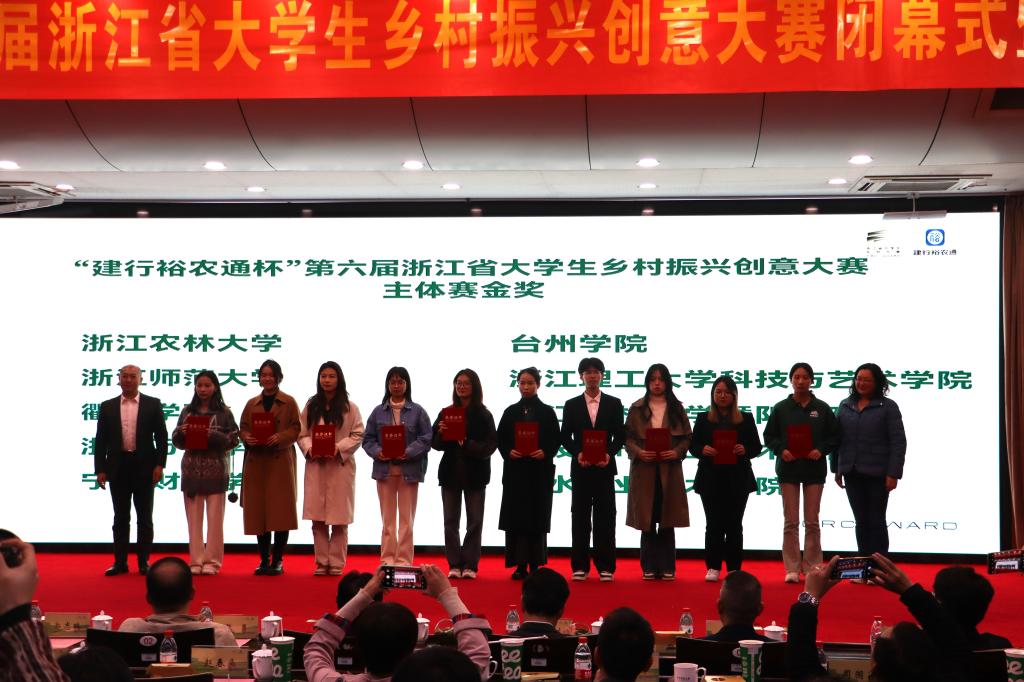 11月14日,“建行裕農通杯”第六屆浙江省大學生鄉村振興創意大賽閉幕式暨頒獎典禮在中國計量大學舉辦。