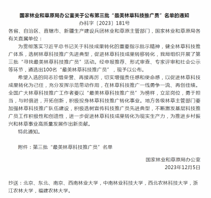 我校6位教師、校友榮獲全國第三批“最美林草科技推廣員”稱號