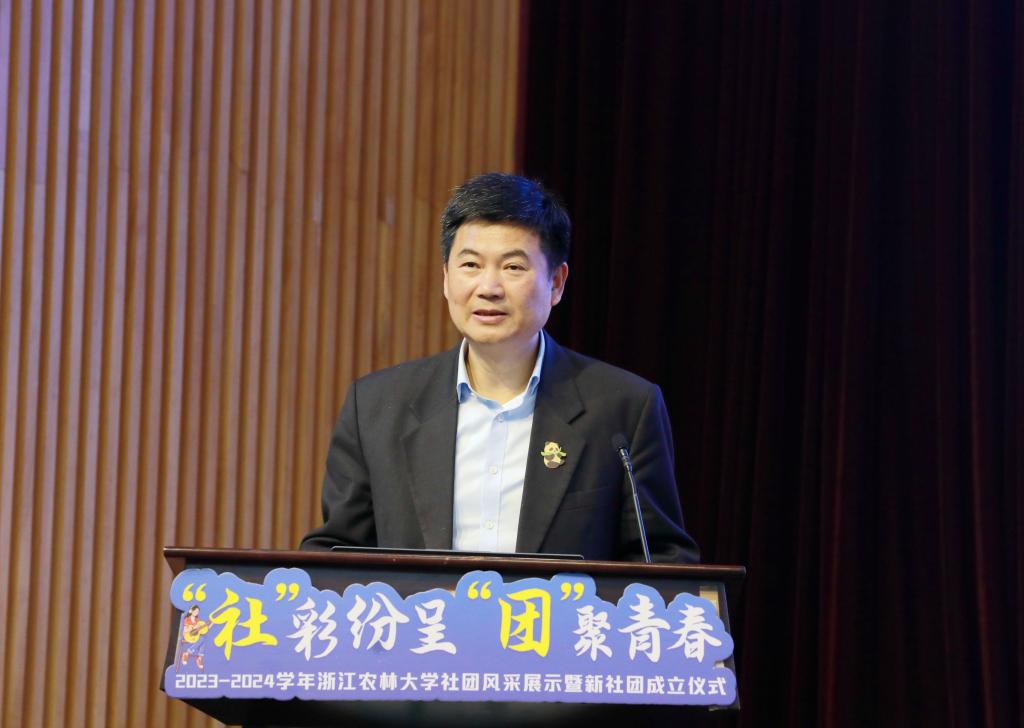 他對同學們提出三點希望。一是希望同學們在社團里彰顯愛好、深耕興趣,能主動走出寢室、走下網絡、走進操場、走上舞臺,參加一個社團、堅持一項運動、接觸一份才藝,在體育運動中強健體魄、愉悅身心,在藝術熏陶中豐富思想、提高修養,感悟“體藝育人,終身受益”的價值所在。二是希望同學們在社團里培養能力、全面提升,能在社團中大膽施展才能,盡情綻放,鍛煉團隊協作能力,提升溝通交流技巧,增強解決問題的能力,實現個人素養的全方位提升,更好地彰顯自我,照亮他人。三是希望同學們在社團里彼此欣賞、互相成就,能在社團這個大家庭中相互欣賞、相互尊重,在相互學習、相互激勵中共同成長,實現“你中有我,我中有你”的精神交融,做到“彼此欣賞,互相成就”。