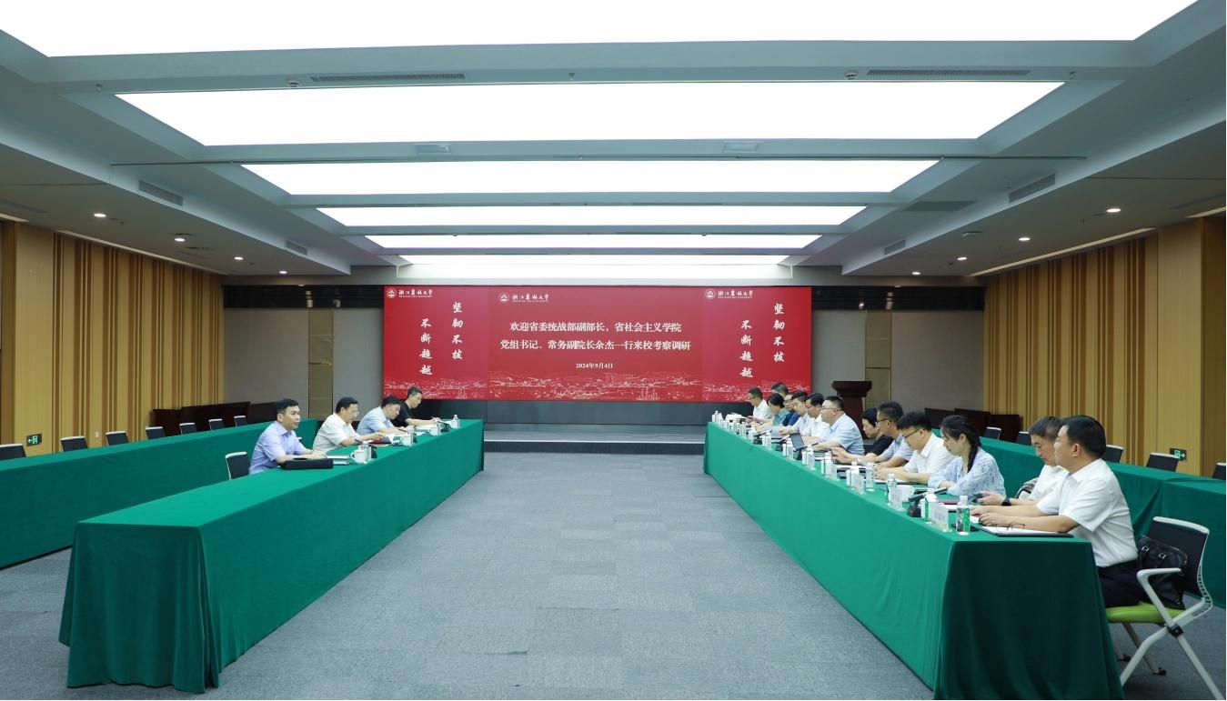 朱斌對余杰一行來校考察調研表示歡迎,對省委統戰部和省社會主義學院一直以來對學校的關心支持表示感謝。在介紹了近年來學校事業發展基本情況后,朱斌指出,學校黨委高度重視統一戰線工作,積極發揮了民主黨派和統戰團體在助力高水平大學建設、服務地方鄉村振興等大局中獨特優勢和作用,形成了良好的工作局面和實踐創新經驗,希望省委統戰部、省社會主義學院能夠一如既往地關心指導學校建設發展和統一戰線工作。