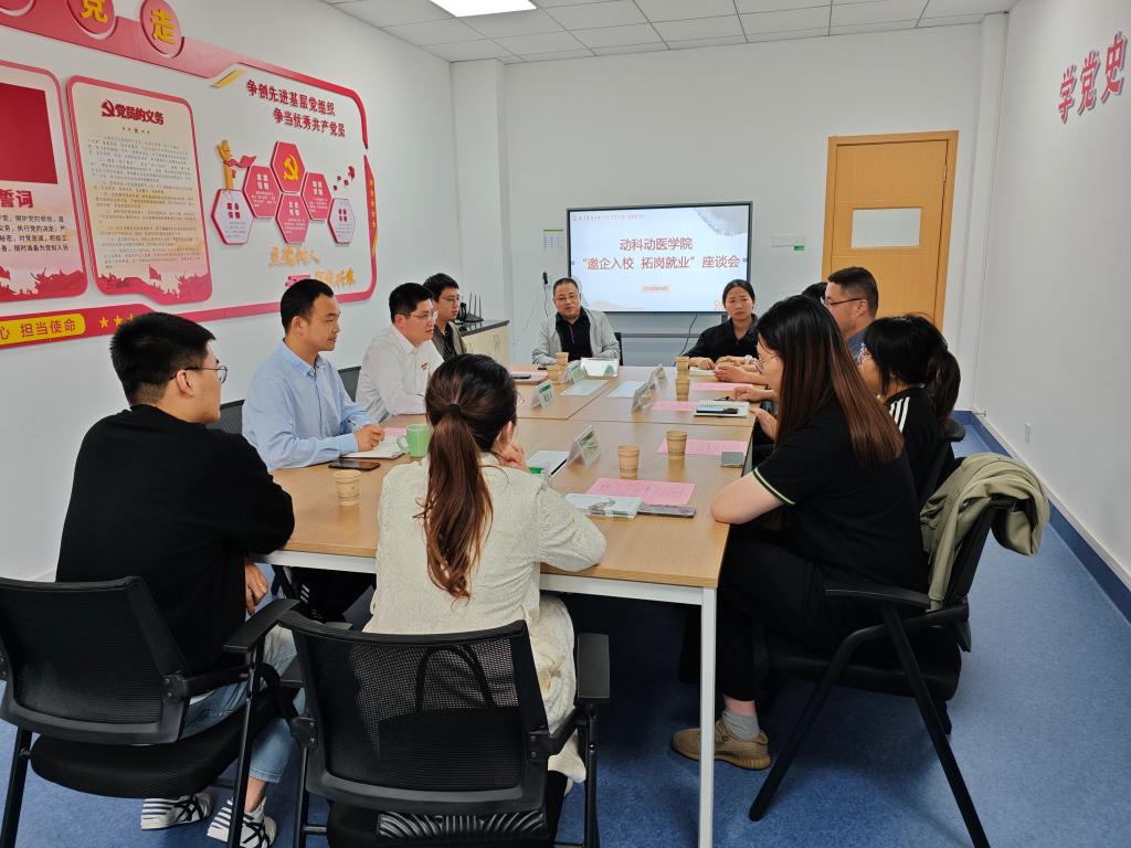 4月19日,動科動醫學院組織開展“邀企入校 拓崗就業”座談會與宣講會,學院相關負責人、企業代表、畢業班輔導員及2024屆畢業生參加會議。