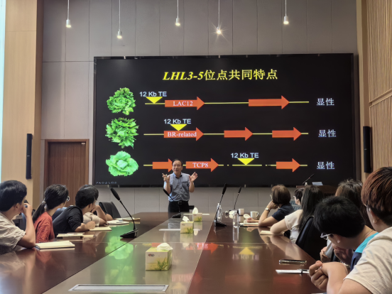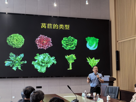 匡漢暉簡要介紹了自己科研團隊的基本情況,并從生菜不同類型的結球性、多基因控制生菜結球、生菜結球位點、基因對表型的影響、不同株型的遺傳分析等多個方面入手,用通俗的語言、豐富的圖片、詳實的數據為與會師生生動講解了生菜結球的遺傳和分子機理。
