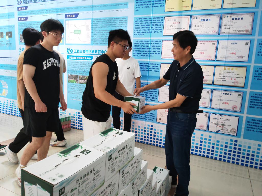 隨后院領導們為留校的光機電學子送上慰問品,同學們表示感謝學院的關心關懷,一定會珍惜暑期時間,全力以赴,備考備賽,努力提升自己的專業知識和競賽水平,為學院爭光,為學校添彩。