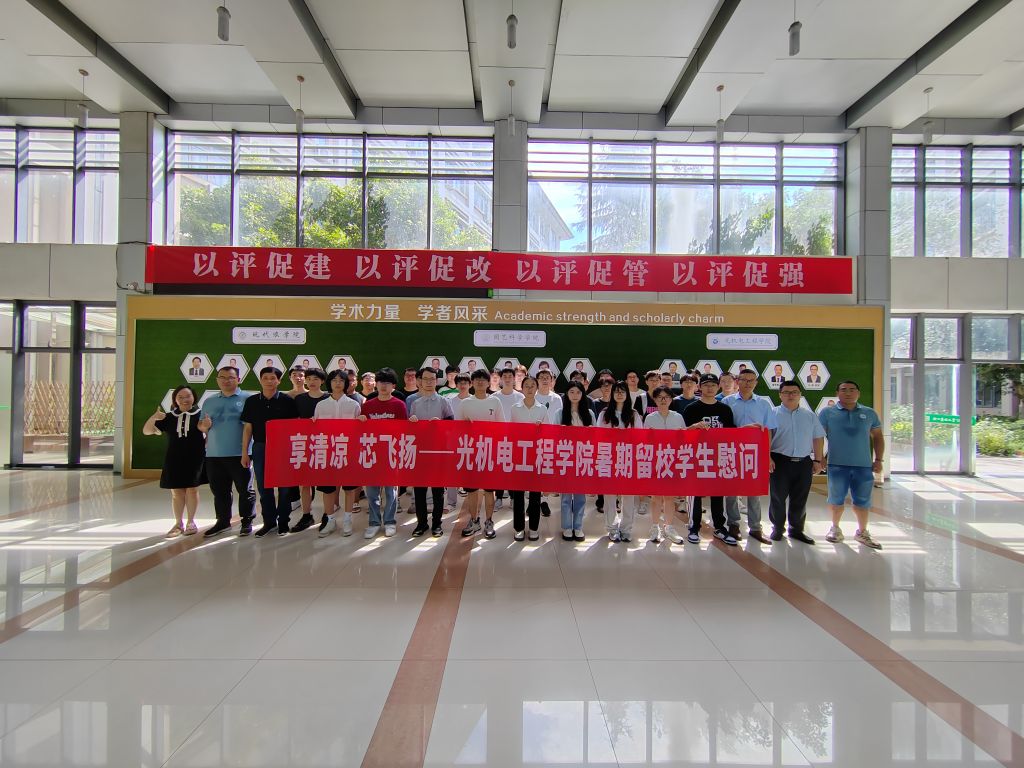 7月19日,光機電學院開展“享清涼,芯飛揚”暑期留校學生慰問活動,學院全體領導班子、學生辦負責人、年級輔導員共同看望暑期留校學生并送上慰問品。
