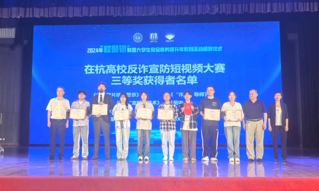 近日,由我校國際生拍攝制作、校保衛部選送的反詐宣防短視頻《反詐者聯盟》榮獲在杭高校反詐宣防短視頻大賽三等獎。