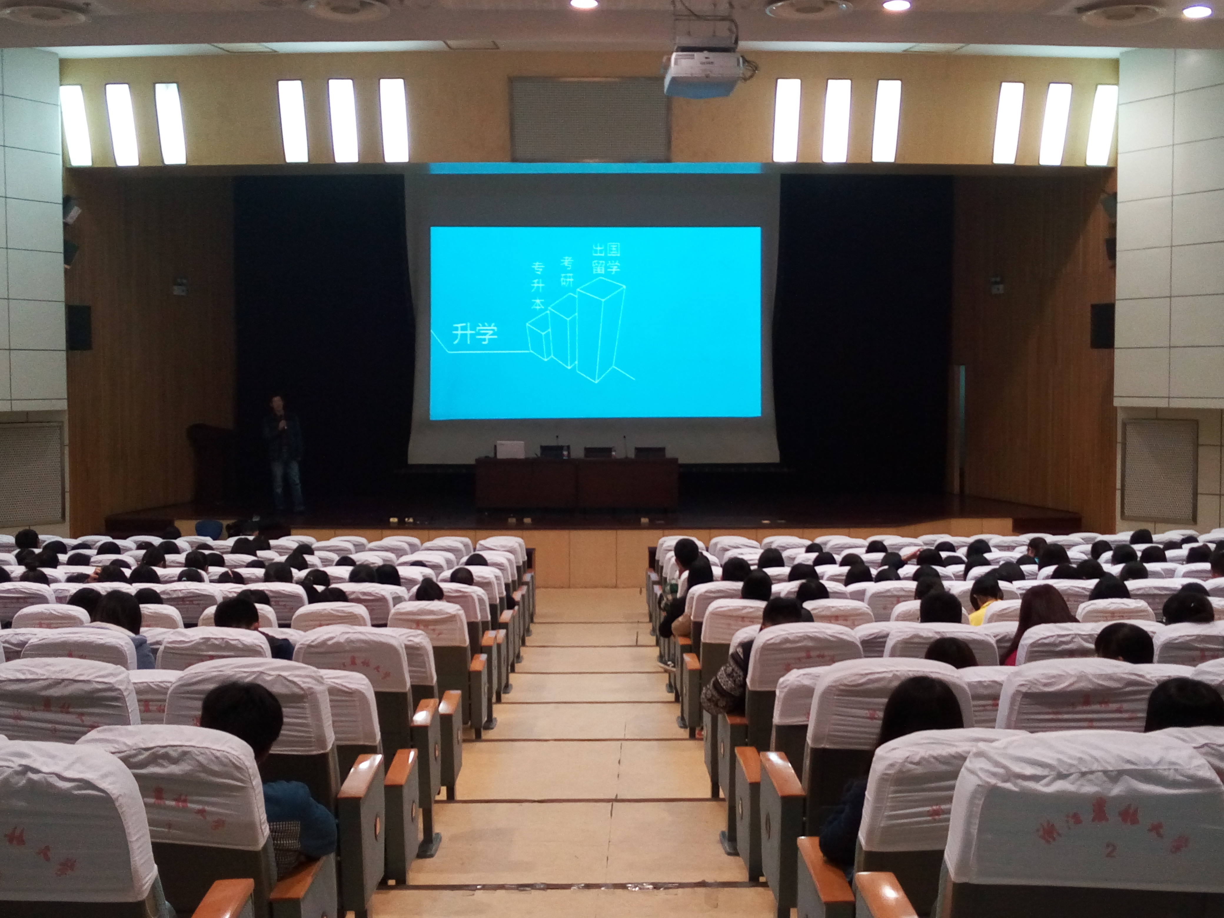 講座伊始,陳旭華從“畢業后做什么”切入主題,他給出升學、求職、創業等選項。他結合國家公務員歷年招考情況分析求職現狀的困境,并就今年兩會兩大熱點話題“跨境電子商務”與“大眾創業”展開敘述,闡釋跨境電子商務的定義,指出大學生創業的必要性與重要性。他給同學們介紹了速賣通、WISH等多種B2C開放平臺,鼓勵外語專業學生結合專業優勢開展跨境電子商務的創業,并結合馬斯諾需求層次理論講述了人類生理精神需求層次,給出創業的各種建議。