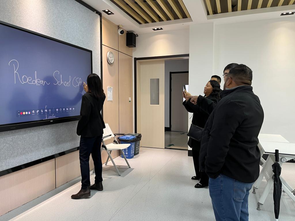 Varinia Claydell Mary Eddie一行親自體驗了智慧教室教學設備,并對我校信息化建設工作表達了高度的興趣和贊賞。