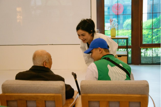 部分志愿者陪伴在長者們身側,和他們親切交談,關心地詢問長者們的生活情況,耐心傾聽長者們的故事和心聲,現場氛圍融洽而溫馨。