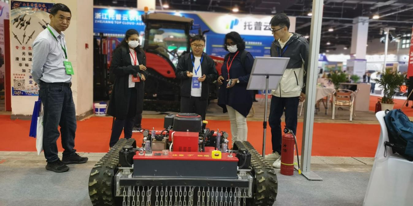 4月26-28日,第二屆中國丘陵山區農業機械博覽會暨中國(永康)農林裝備博覽會以“數智農機 創新引領”為主題,以展示推廣丘陵山區先進農林裝備為核心在浙江永康舉辦。我校智能農林裝備研究團隊精心挑選了4LMD-22 電動梳刷式藍莓采摘收獲機、折展式林果振動采收一體機、遙控履帶式果園割草機、2BM-3型林木無紡布大小容器苗間自動移栽機、古樹名木無損檢測探傷儀等五臺(套)裝備精彩亮相博覽會,整個三天的參展期間團隊教師及研究生熱情周到細致的推介學校農林裝備科研成果、積極深入地與參會觀眾互動,充分展示了我校致力鄉村振興、培養知農愛農人才的良好形象。