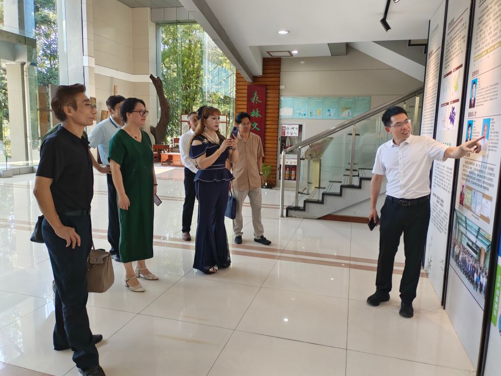 7月5日,奧立控股(深圳)有限公司董事長余嫣然、泰霖私募基金管理(湖北)有限公司高級合伙人王楓、北京三葉清國際中醫(yī)醫(yī)院院長汪麗清、紹興市上虞東林針織品有限公司董事長謝新燦等企業(yè)家到竹子研究院調(diào)研交流。竹子研究院黨總支書記周能壽陪同調(diào)研并主持座談,竹材化學(xué)利用團(tuán)隊負(fù)責(zé)人及成員參加了座談交流。