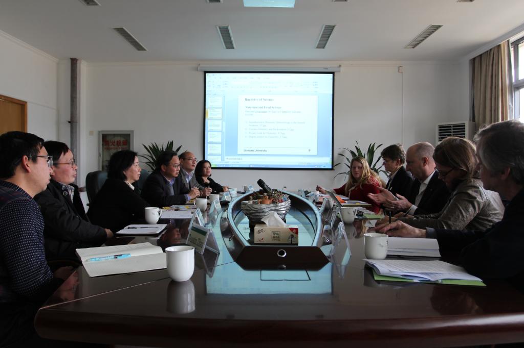 朱祝軍介紹了學(xué)校概況和學(xué)院學(xué)科建設(shè)、科學(xué)研究、人才培養(yǎng)等情況。Ian Nicholls介紹了林奈大學(xué)的辦學(xué)情況,林奈大學(xué)相關(guān)負責(zé)人詳細介紹了本科生“3+1”項目、研究生招生培養(yǎng)以及暑期游學(xué)項目等校際交流項目。與會雙方就相關(guān)專業(yè)的合作,特別是在交換生英語水平標準、研究生培養(yǎng)模式等方面展開了深入交流。