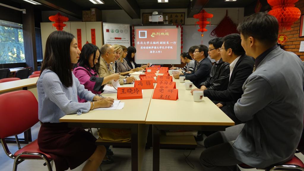 當地時間10月16日,東北大學副校長王福利一行5人訪問諾維薩德大學孔子學院,了解當地的漢語教學及文化推廣情況,調研孔院在智能化信息技術方面的需求。