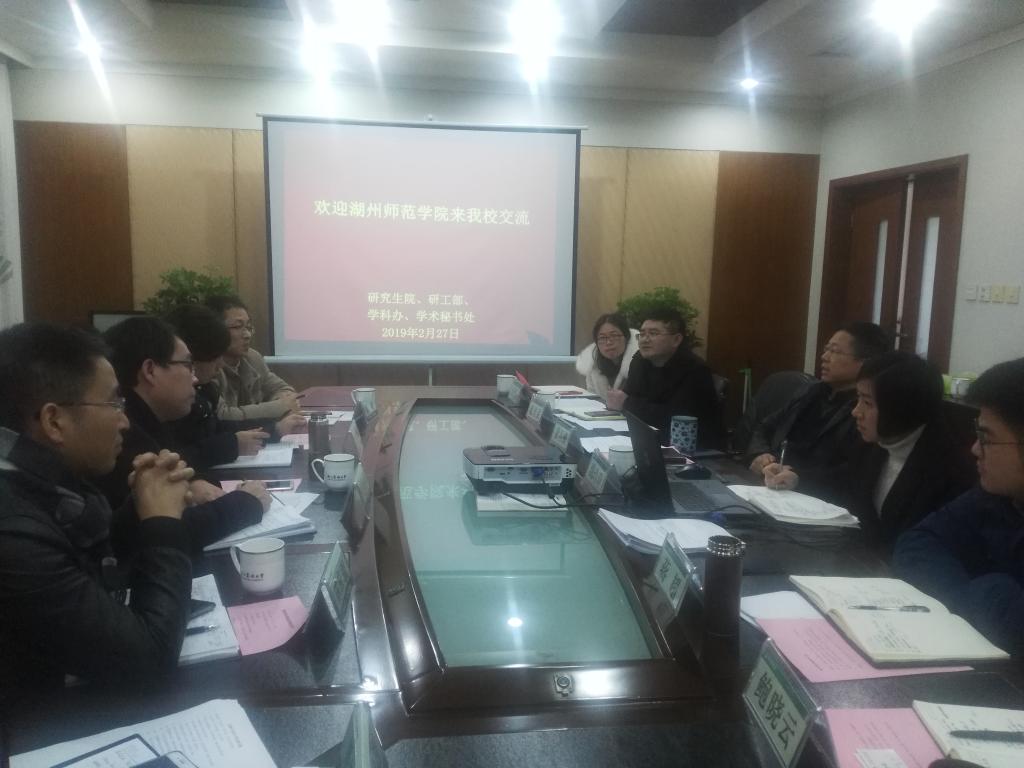近日,湖州師范學(xué)院學(xué)科規(guī)劃與建設(shè)處、研究生處傅曉萍一行5人來(lái)我校調(diào)研學(xué)科建設(shè)、學(xué)位點(diǎn)建設(shè)與評(píng)估、研究生招生與培養(yǎng)等工作。